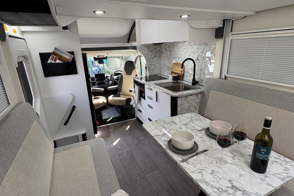 The Avida Leura motorhome offers plenty of living area without compromising on comfort. Enjoy the ample lounge area with table for dining. Drop down your electric roll down bed for sleeping. The kitchen is behind the cab on the drivers side and the bathroom with shower and toilet facilities is at the rear of the motorhome.